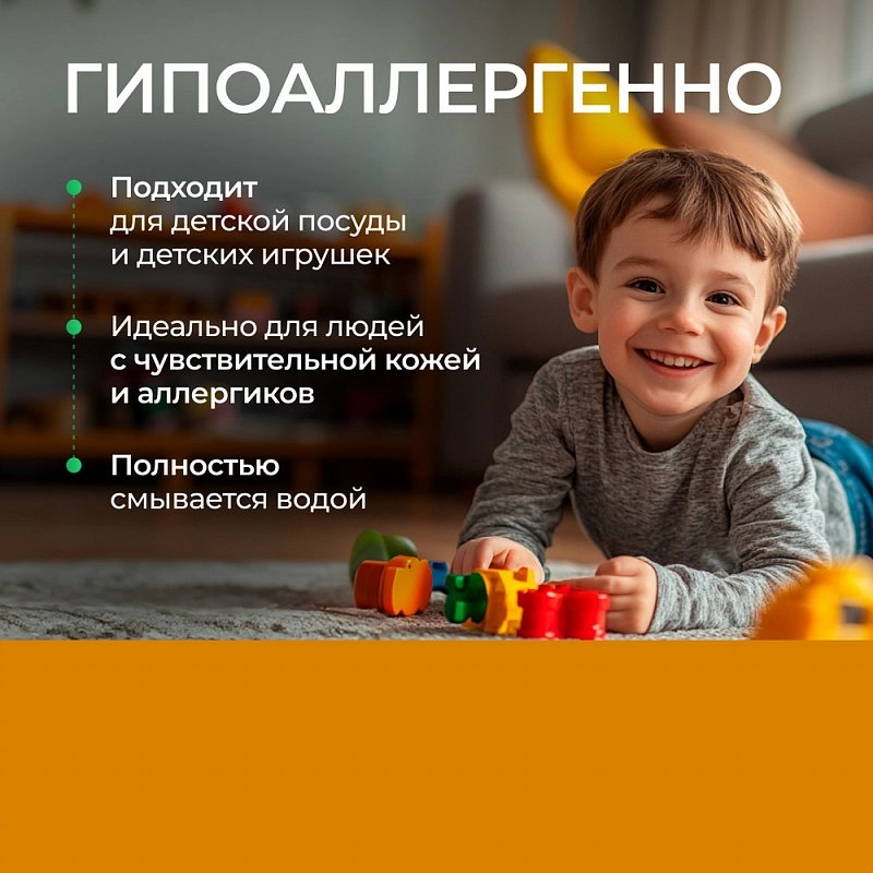 — Область применения: для мытья всех видов посуды, кухонного инвентаря и детских игрушек.