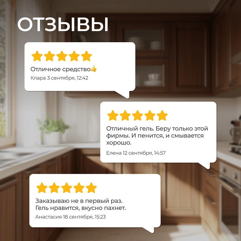 Главный помощник на вашей кухне! Эффективно справляется с жиром и налетом, не сушит кожу рук, экономично расходуется благодаря концентрированному составу.