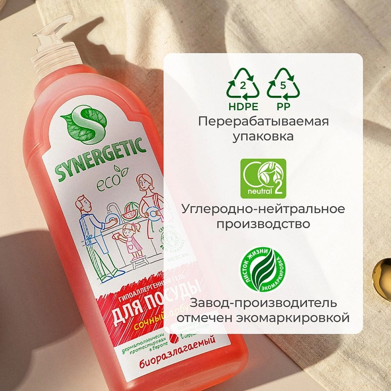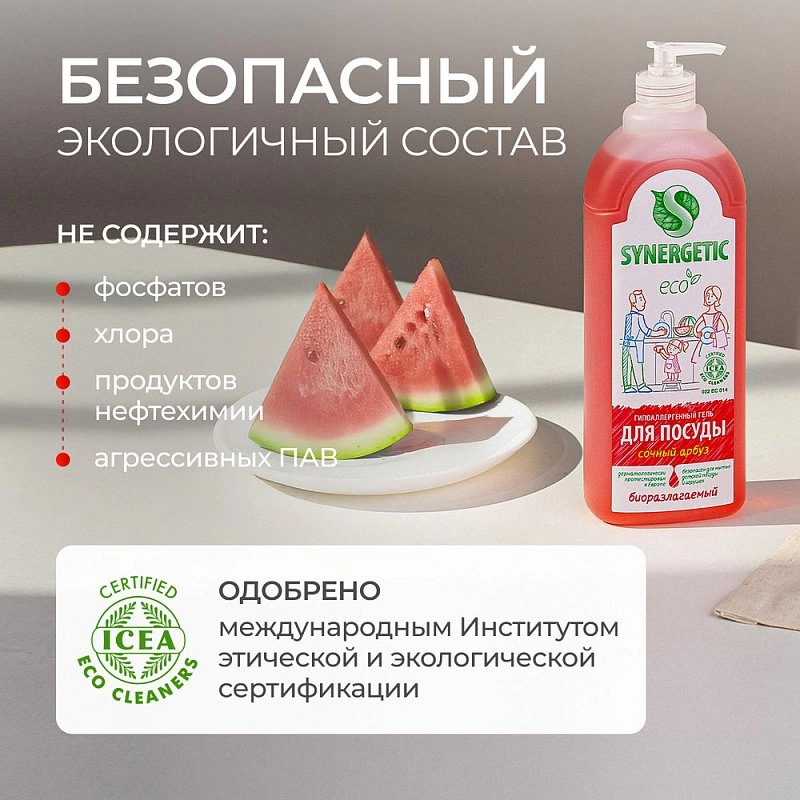 Лето круглый год и никакой арбузной жвачки и других искусственных ароматов. Этот гель для мытья посуды пахнет так, будто вы только что с хрустом разрезали сочный, спелый, прохладный арбуз, пахнет серединой жаркого августа и сладостью последних недель лета. Голову кружит композиция эфирных масел бергамота, сандала, лемонграсса, а правильный оттенок красного гелю придает безопасный пищевой краситель кармуазин.