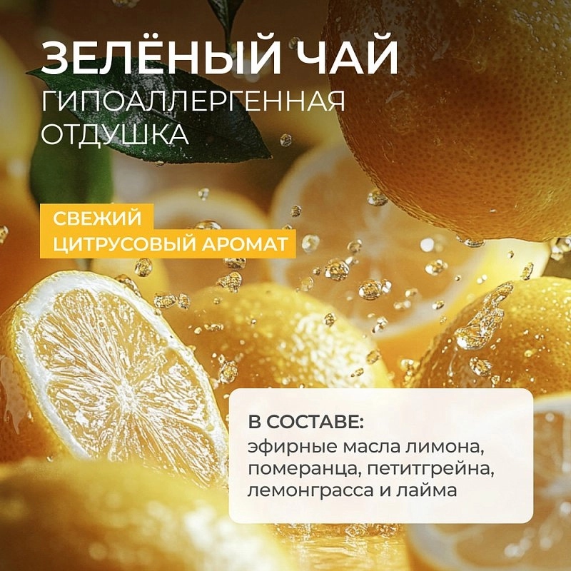 Чаще всего средства для мытья посуды пахнут именно лимоном, вот и мы не остались в стороне и сделали свою версию классики. Для аромата составили композицию из натуральных эфирных масел лимона, померанца, петитгрейна, лемонграсса и лайма, а для цвета добавили пищевой краситель тартразин.