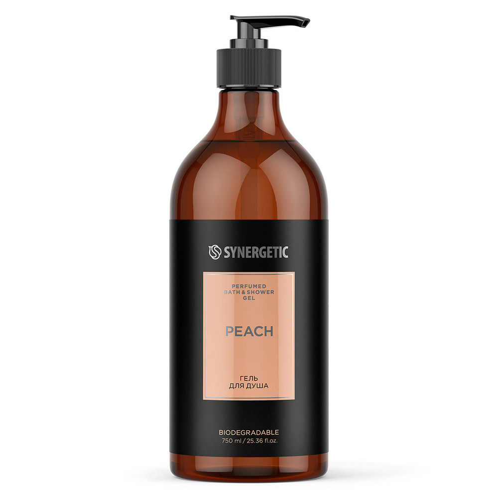 Парфюмированный гель для душа SYNERGETIC peach/персик бережно очищает и ухаживает за кожей, оставляя на ней соблазнительный аромат сочного и сладкого персика.