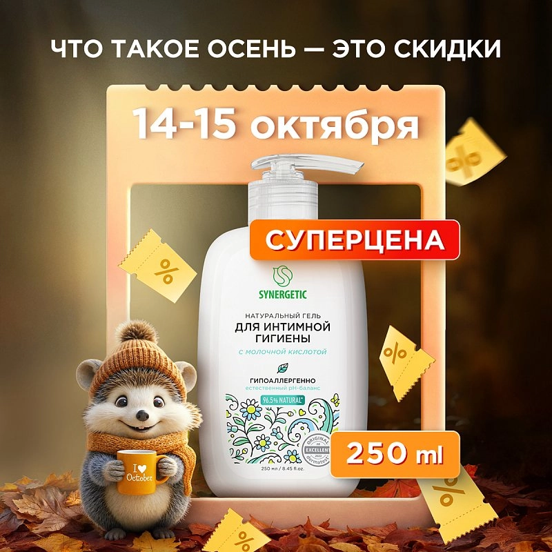 Натуральный гель SYNERGETIC для интимной гигиены идеально подходит для ежедневного применения, обеспечивает деликатный уход за самыми нежными местами.