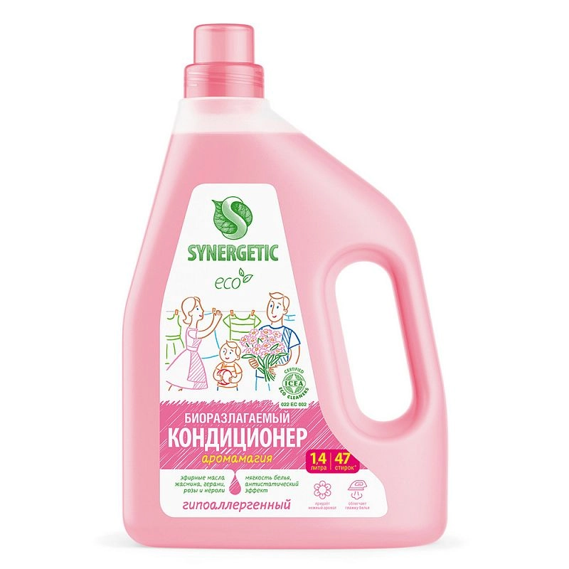 Биоразлагаемый кондиционер-ополаскиватель для белья SYNERGETIC «Аромамагия» – высокоэффективное средство, бережно ухаживающее за всеми типами ткани, в том числе деликатными, и придающее мягкость белью после стирки.