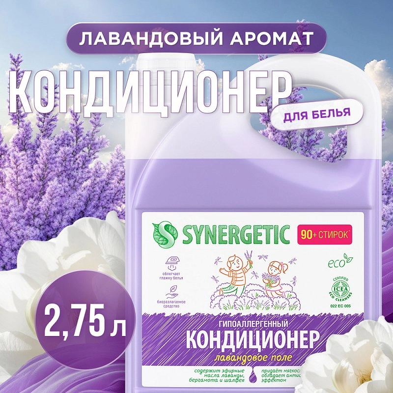 Сейчас объясним, к чему это мы. Средство для стирки обеспечивает чистоту, но именно кондиционер незаметно повышает качество жизни каждый день: смягчает ткань, придает аромат свежести, облегчает глажку и дает антистатический эффект. Вспомните ощетинившиеся махровые полотенца, которые стоят колом после высыхания — огрубевшая ткань хуже впитывает влагу и раздражает кожу. Кондиционер SYNERGETIC справляется со своей задачей даже в жесткой воде и заботится о вашем хорошем настроении каждый день.