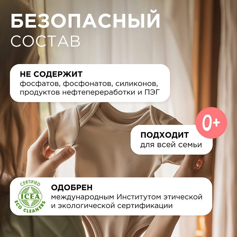 Экологичный и безопасный концентрированный кондиционер: забота о ткани, приятный аромат и экономичный расход.