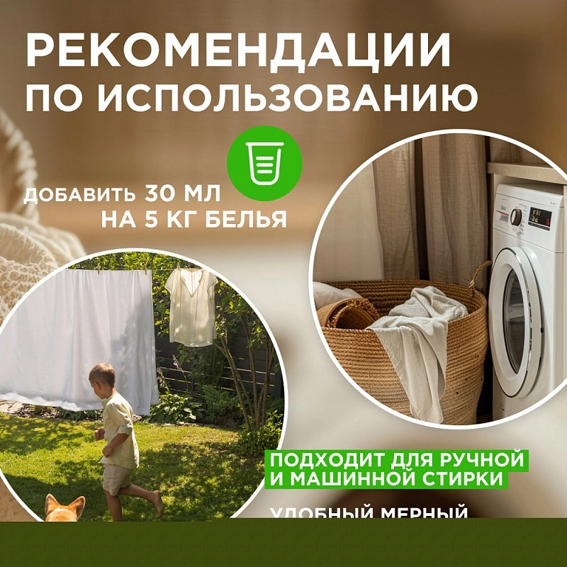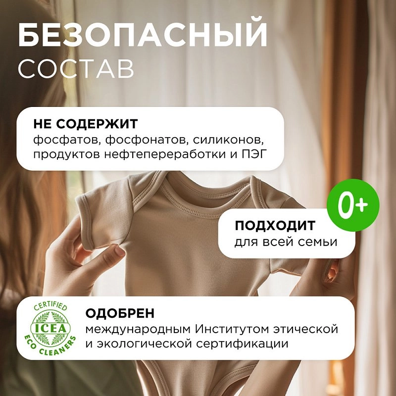 Экологичный и безопасный концентрированный кондиционер: забота о ткани, приятный аромат и экономичный расход.