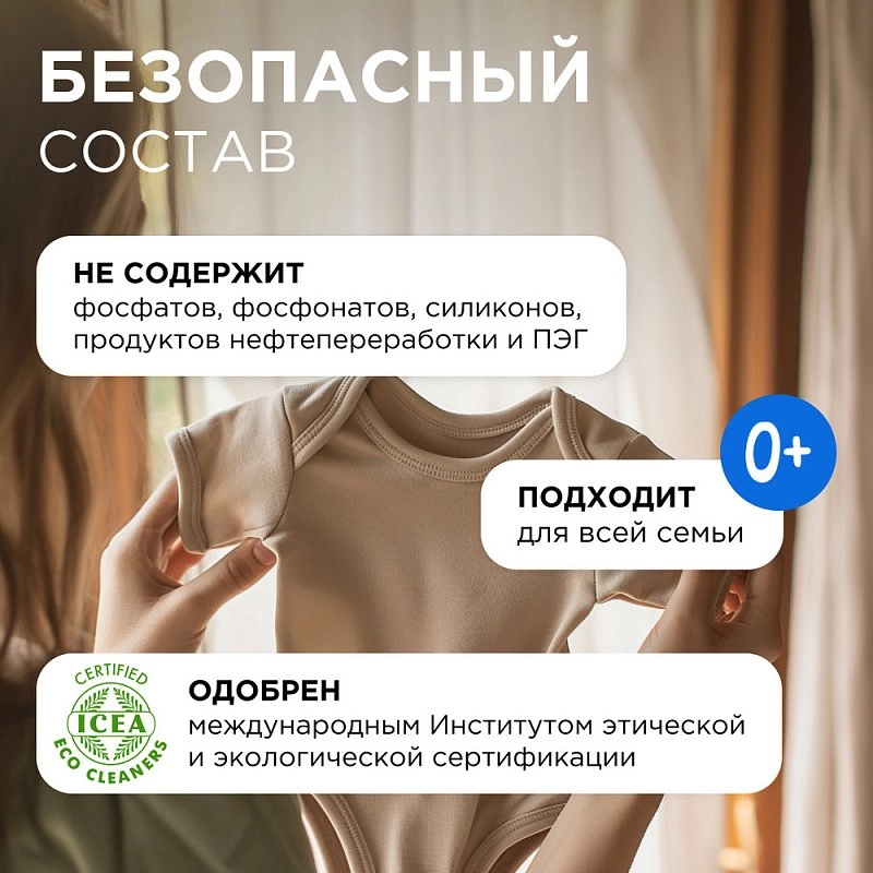 Экологичный и безопасный концентрированный кондиционер: забота о ткани, приятный аромат и экономичный расход.