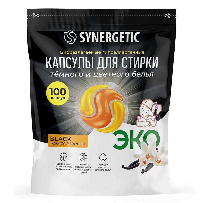 Капсулы для стирки SYNERGETIC Black, 100 шт