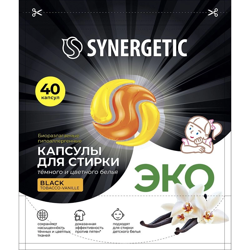 Капсулы для стирки SYNERGETIC Black «Табак-ваниль», 40 шт.
