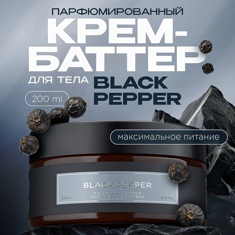 Крем-баттер для тела SYNERGETIC черный перец с комплексом масел ши, макадамии, кокоса, виноградной косточки и сладкого апельсина максимально питает и глубоко увлажняет кожу.