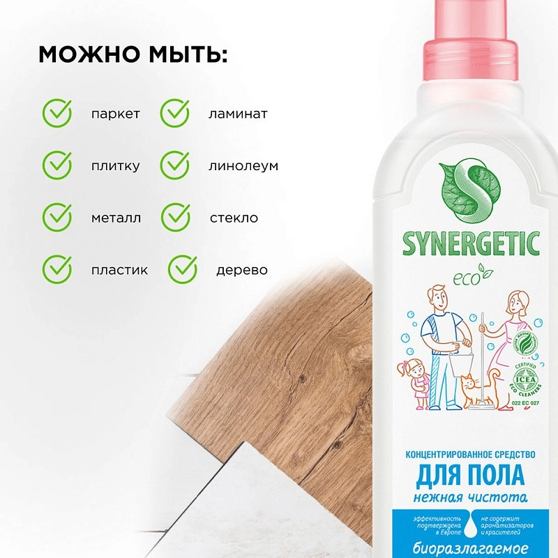 Экологичный концентрат незаменим для уборки и подходит не только для пола, но и для обработки любых других поверхностей: полов, стен и даже потолка.
