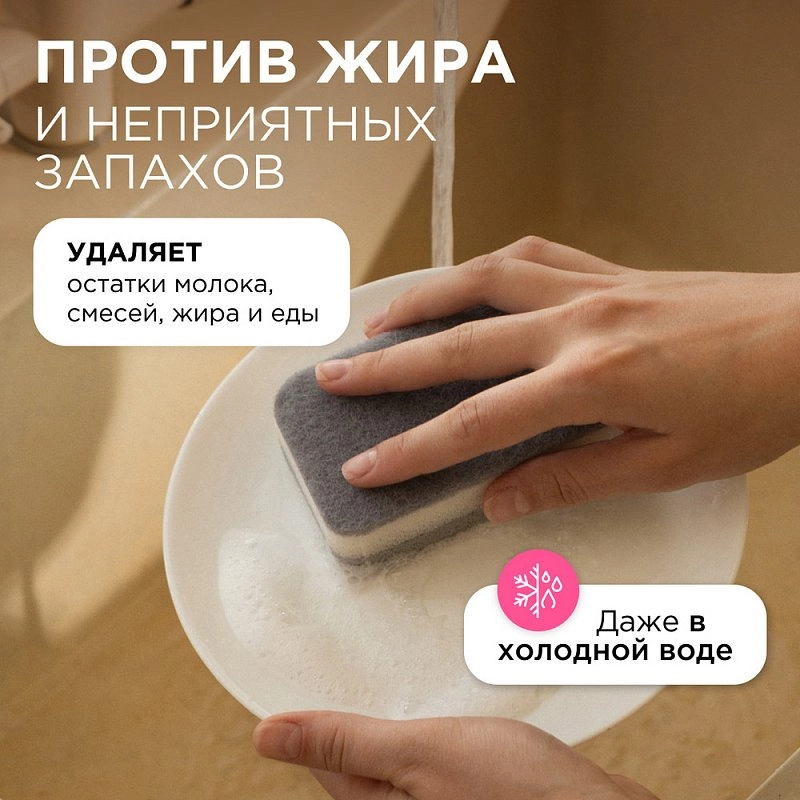 Нанесите средство на влажную губку, вымойте посуду, смойте загрязнения водой.