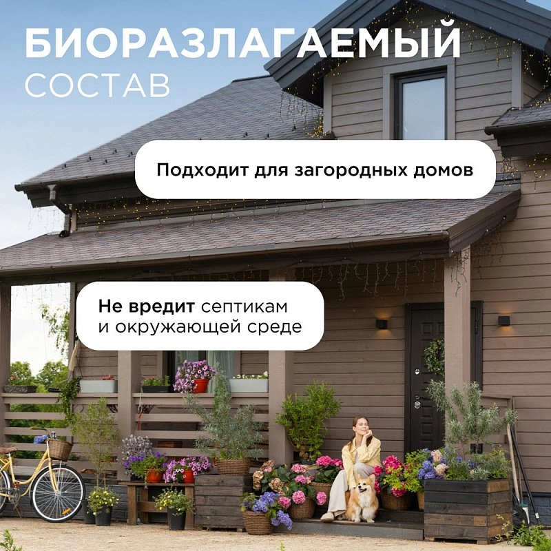 Безопасно для септиков и не вредит микроорганизмам, которые их населяют.