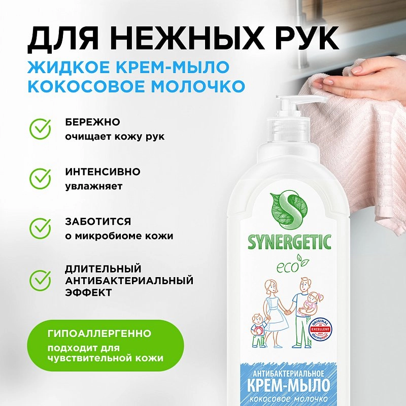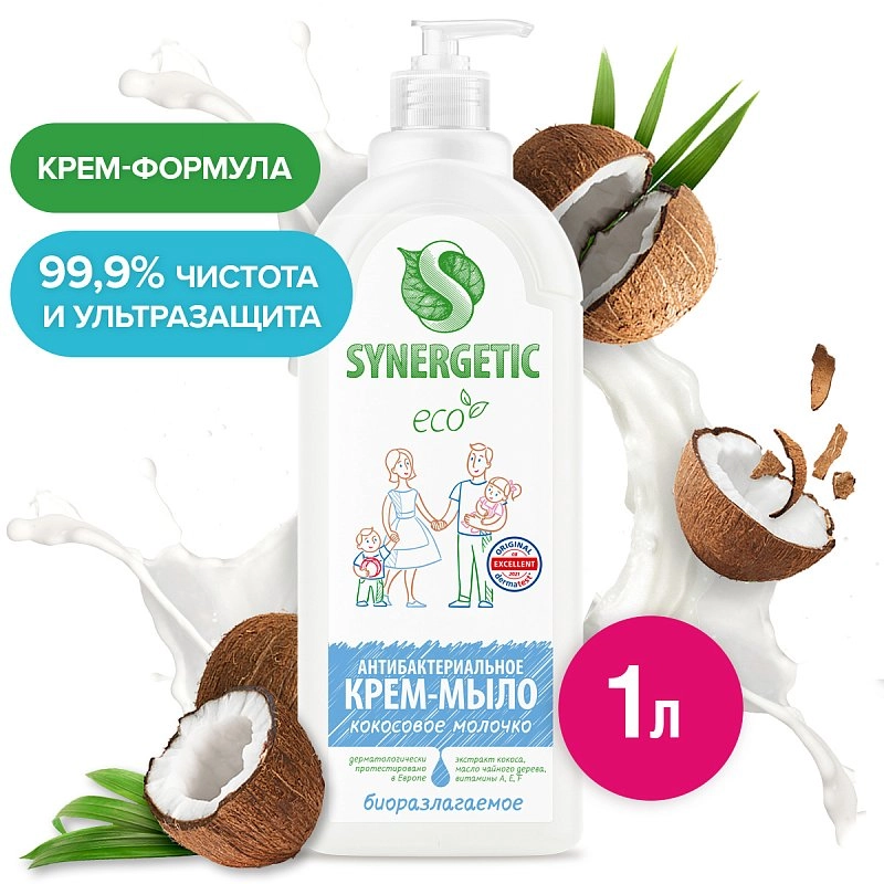 Антибактериальное гипоаллергенное крем-мыло для рук и тела «Кокосовое молочко» с уходовым эффектом!