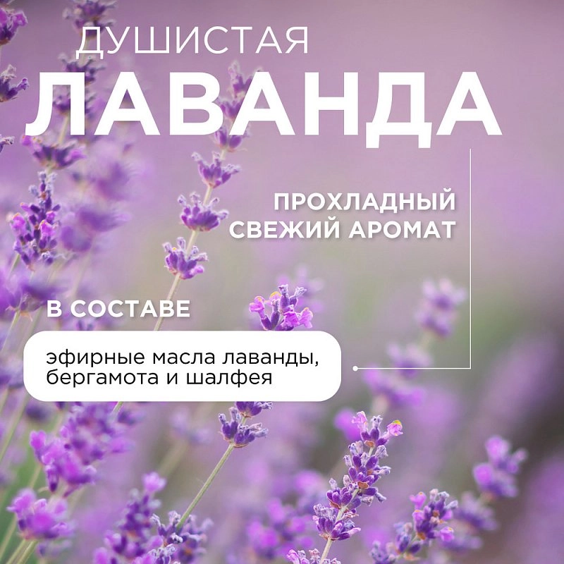 Комбинация растительных А-тензидов, морской соли и натуральных эфирных масел лаванды, бергамота и шалфея эффективно устраняет загрязнения и неприятные запахи даже в холодной воде. Растительный глицерин обеспечивает интенсивное увлажнение кожи.